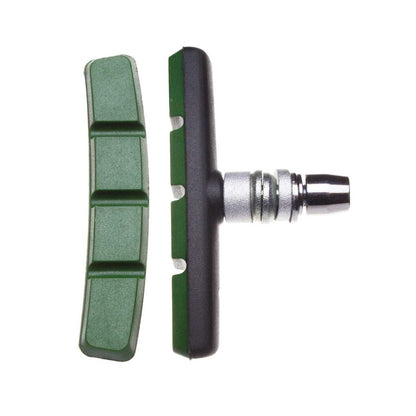 Coppia di pattini freno BRN verdi lunghi 75 mm per v-brake. Ideali per e-bike e bici con carichi pesanti, sono costituiti da un telaio interno più robusto per aumentare la potenza di frenata.